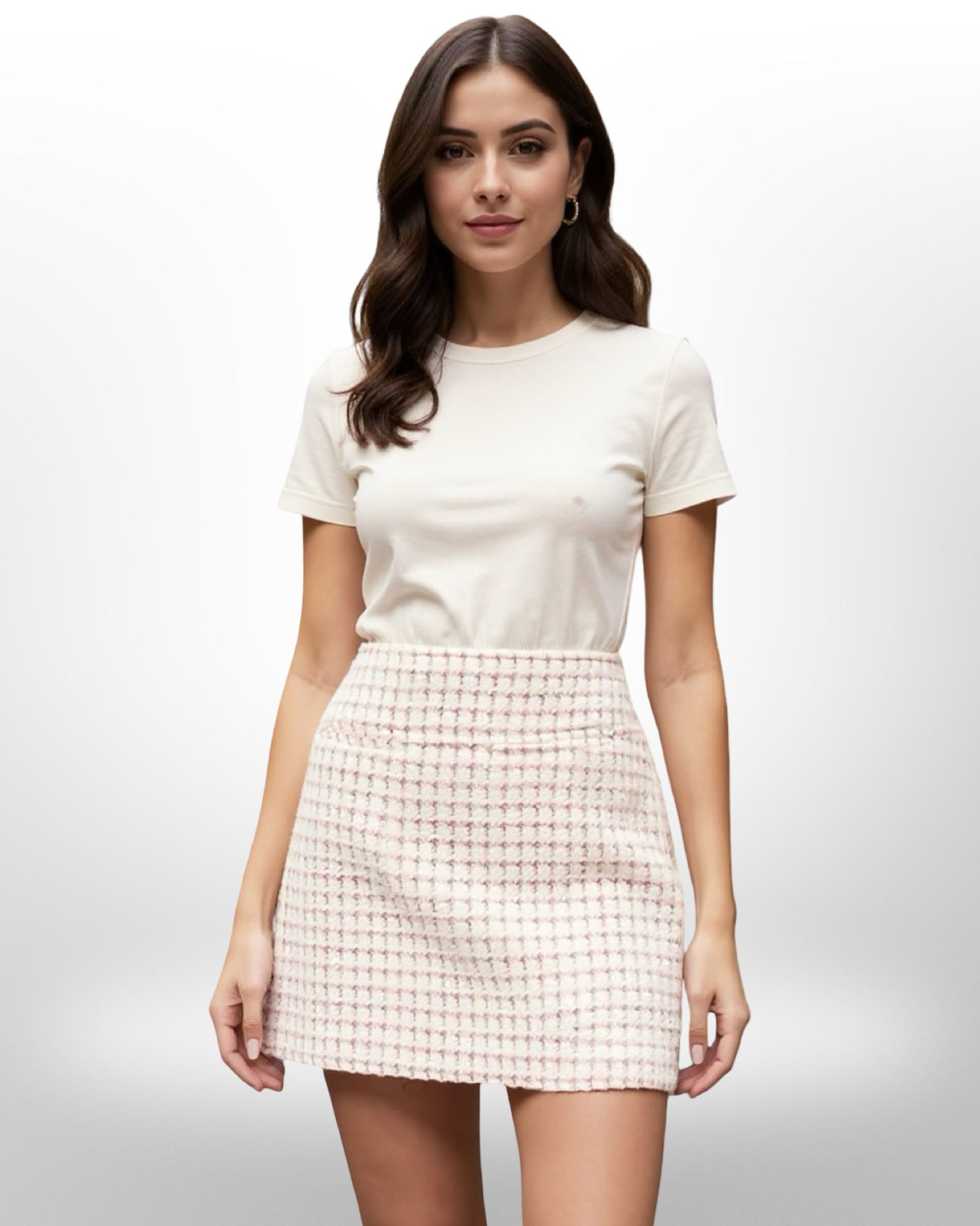 La coupe impeccable de cette mini jupe mettra en valeur votre silhouette tout en offrant une touche de modernité à votre tenue. Ses nuances subtiles de blanc et rose ajoutent une note de fraîcheur et de féminité, s’associant aisément avec des tops simples ou plus élaborés. Cette jupe convient à toutes les saisons grâce à son tissu en laine chaleureux et doux.