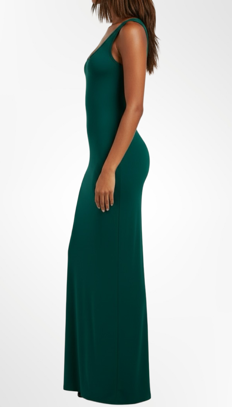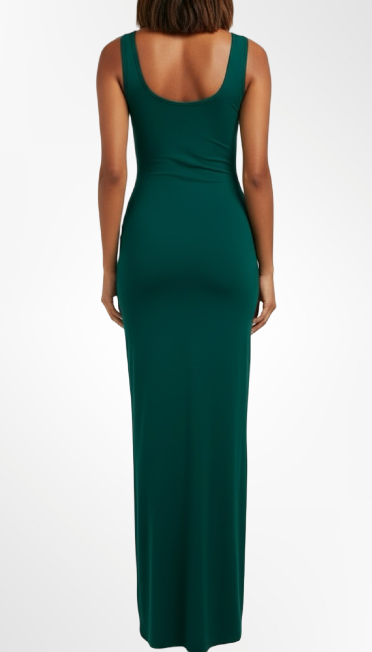 Conçue pour épouser parfaitement vos courbes, cette robe met en valeur votre allure naturelle. Sa teinte verte luxueuse ajoute une dose de fraîcheur et d’élégance, parfaite pour les soirées chics ou les moments marquants.